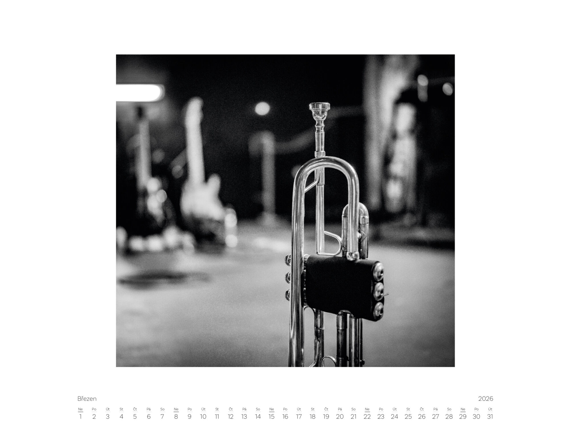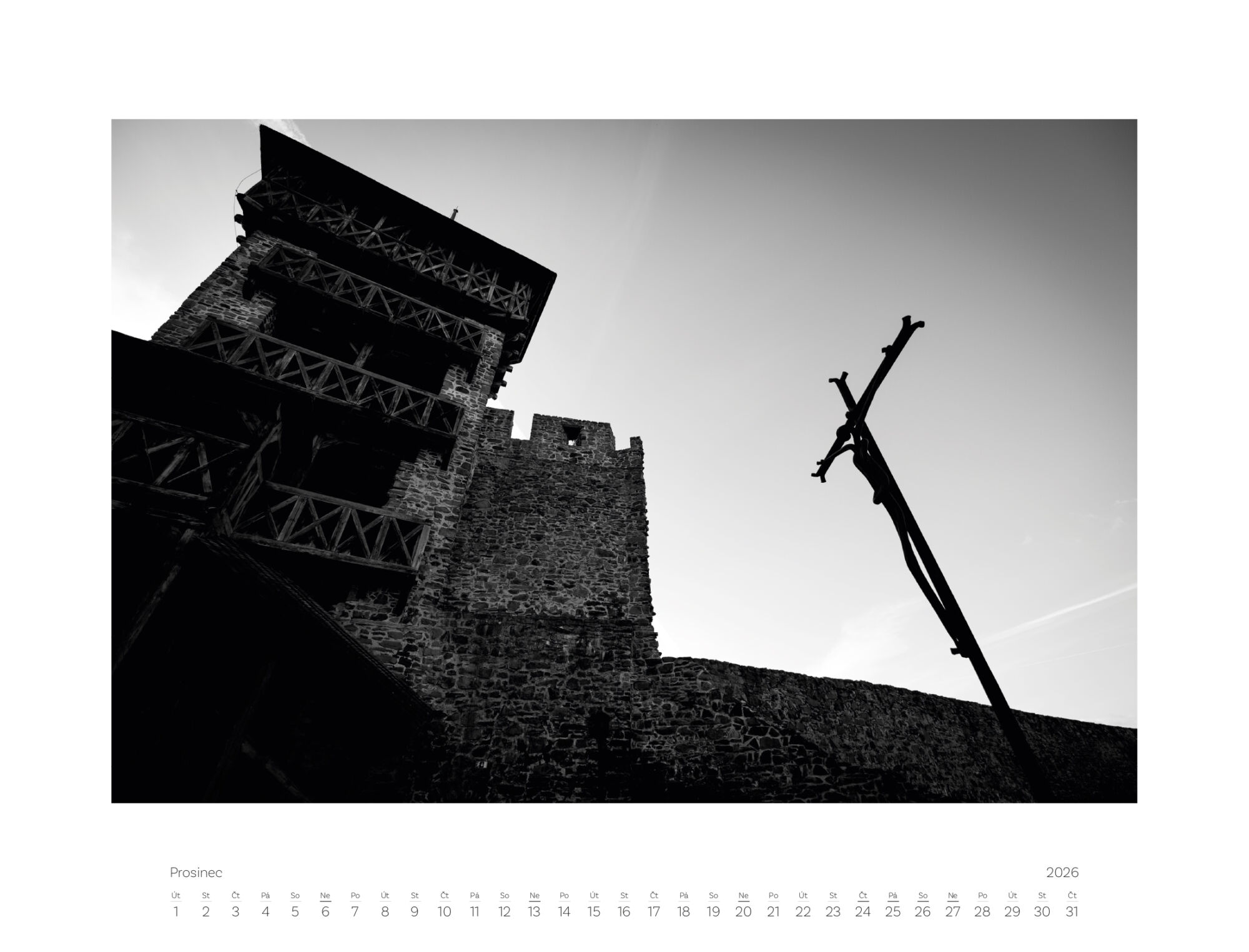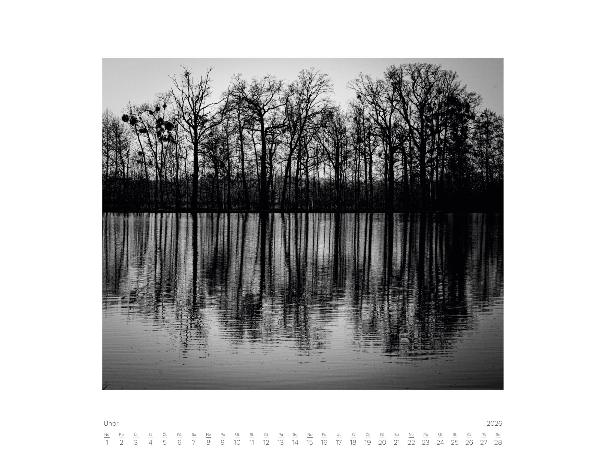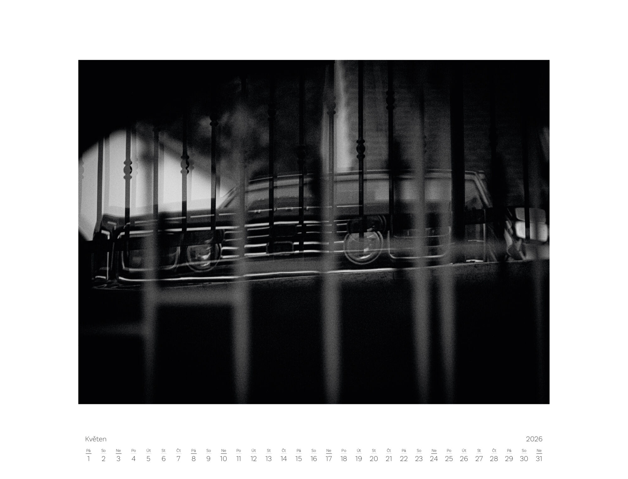 Kalendář obsahuje 12 černobílých fotografií pro jednotlivé měsíce a titulní fotografii na obálce.